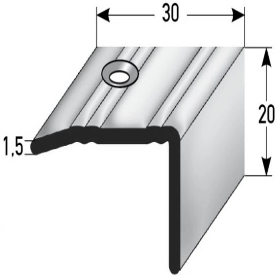Nez de marche | cornière 20 mm x 30 mm | inox | antidérapant R10 DIN 51130