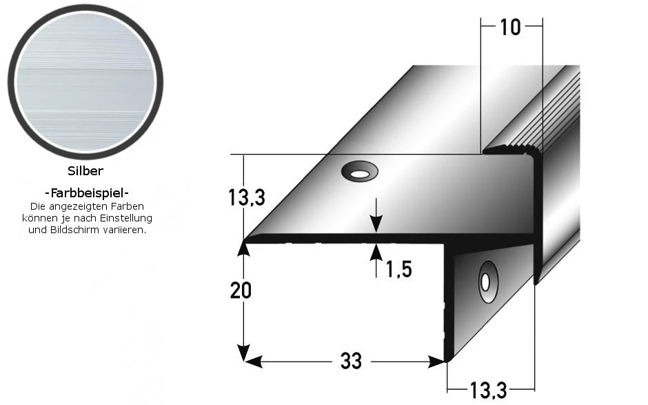 Nez de marche sol stratifié ou parquet | cornière | épaisseur sol 13.3 mm | aluminium anodisé