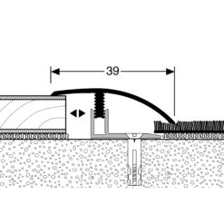 Dans les zones très fréquentées les profils de finition doivent être vissés ET collés à la fois. Voulez-vous augmenter la capacité de charge nous recommandons de remplir la cavité entre le profil de finition et le revêtement de sol.